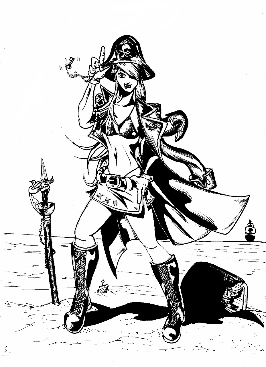 Dentro de esta ilustración refiere la reinterpretación del personaje "Lady serenity" usando técnica blanco y negro con tinta tratando de representar una catitus arrogante y jactanciosa por parte del personaje, estando alado de un cofre del tesoro robado recientemente.... directrices de diseño aplicadas solo a personalidad y plano sencillo representando al mismo.