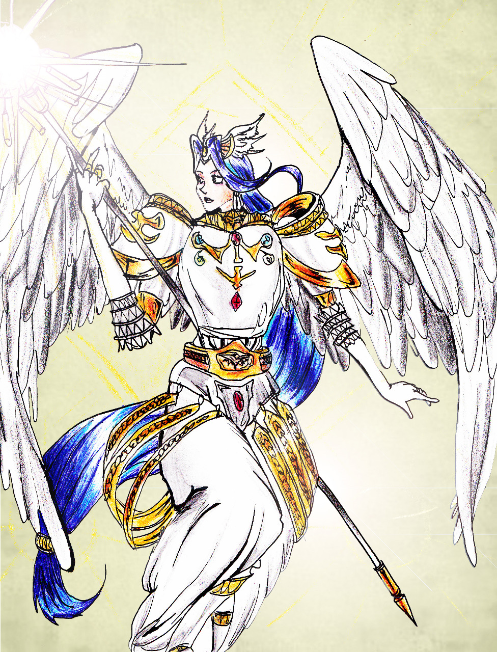 3. Version fan "Celestia Lightsworn Angel" Yu-gi-oh trading card game by Konami, ilustrado en lapiz de color: