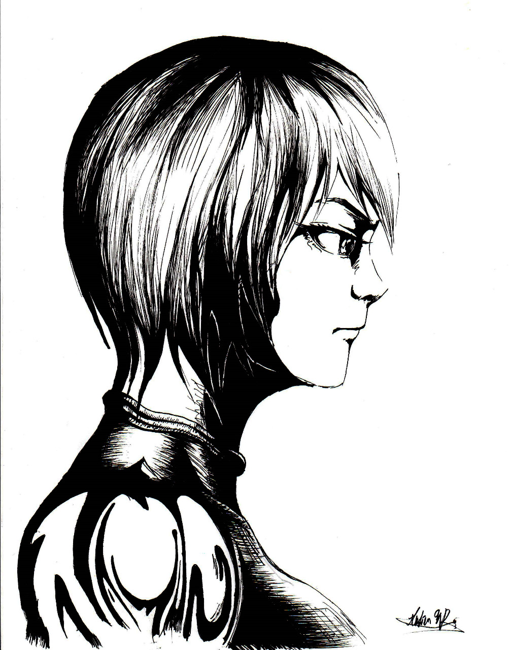 1. Retrato perfil Pasha D'Salvo (protagonista) trabajado en técnica blanco y negro versión semi realista: